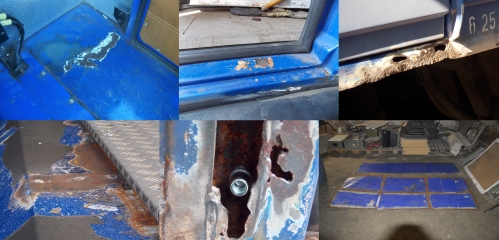 Ein weiterer großer Punkt sind Altererscheinungen. Ein gutes Beispiel sie die Polster der Rückbände, siehe Seite 3. Und der ewig währende Kampf gegen den Rost. Das Bild rechts zeigt nur einen kleinen Ausschnitt davon. Erst in letzter Zeit hab ich mich mehr der Fahrzeugtechnik zugewand. Das wurde auch Zeit. Schließlich soll mein Schätzchen die nächsten 40 Jahre auch noch halten.Ein Punkt dabei sind Wartungsfehler aus der Vergangenheit wie Flüssigkeitsstände nicht überprüft oder Schmierstellen übersehen. Auch ich muß mir diesen Schuh anziehen, weil ich mich erst jetzt darum kümmere. Leider gestaltet sich die Ersatzteilsuche immer schwieriger. Es gibt aber Firmen, die Fans von Expeditionsfahrzeugen mit Ersatzteilen versorgen.